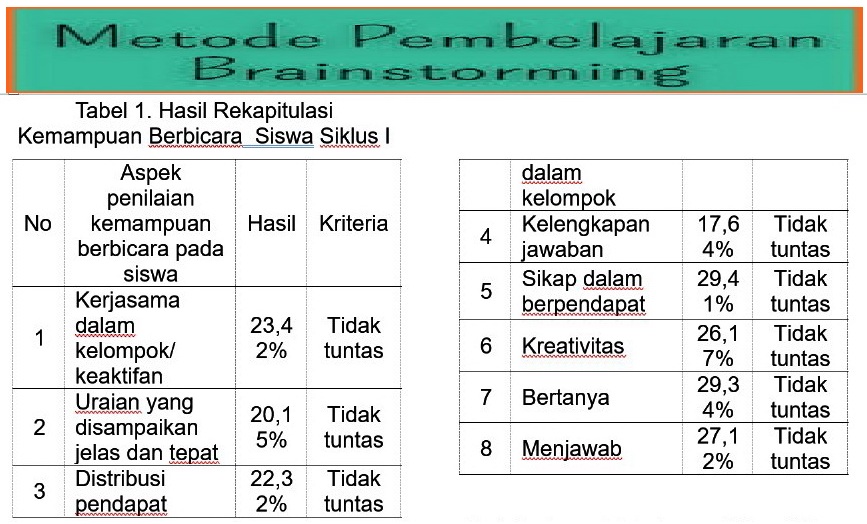 Penerapan Pengaruh Metode Brainstorming Dalam Meningkatkan Kemampuan Berbicara Siswa Kelas VIII SMP Negeri 25 Makassar